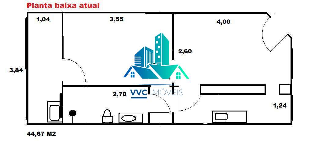 01 sala 02 dormitórios 01 banheiro